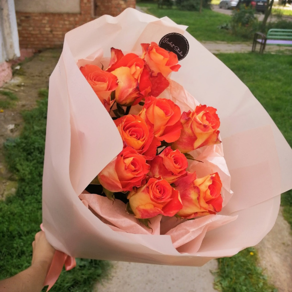 Букет из 11 роз любого оттенка, в зависимости от наличия. Стиль упаковки подбирается индивидуально под каждый букет.