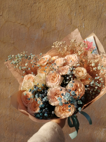 Возможно выполнение из сухоцветов гипсофилы! Если букет на скидке, значит, он на данный момент в наличии только из сухоцветов.