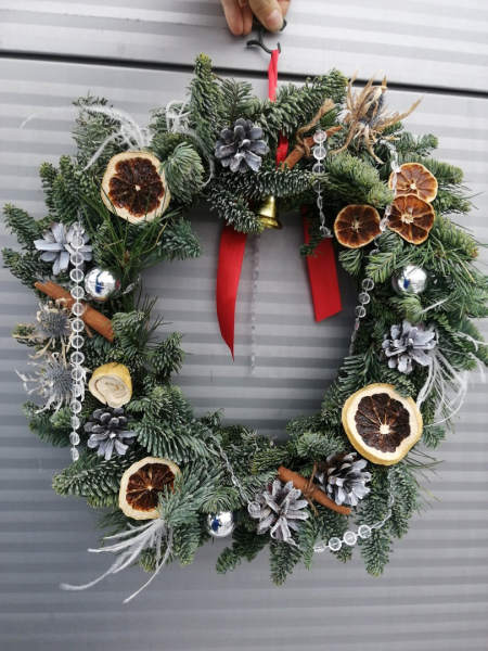 Рождественский венок с натуральным декором. Диаметр около 40 см.