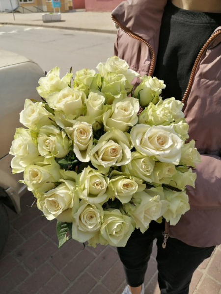 Букет из 29 роз любого оттенка, в зависимости от наличия на складе. Цветы с алтасной лентой, без упаковки