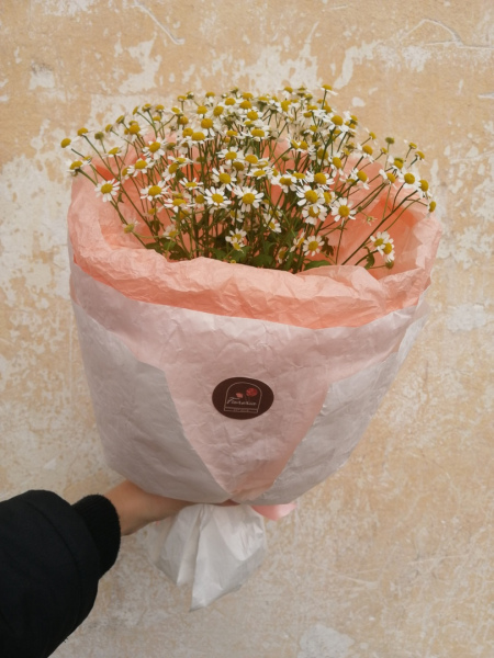Букет из 5 веток танацетума в двухслойной стильной упаковке.