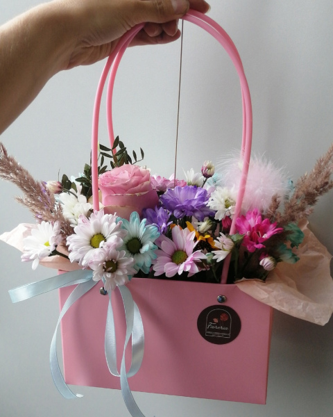Оттенок цветов и сумочки может быть иным, в зависимости от наличия.