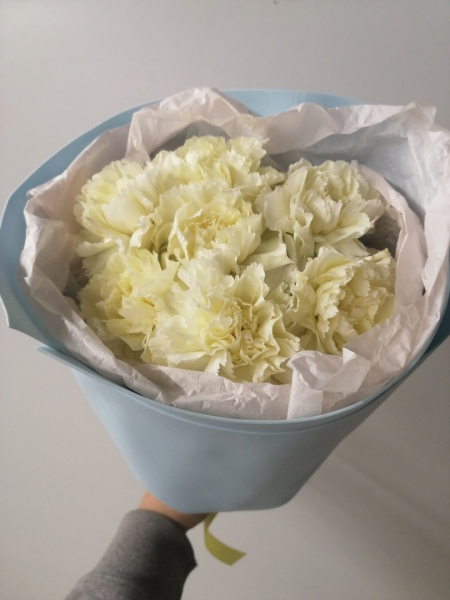 Букет из 7 диантусов (гвоздик) в двухслойной упаковке.