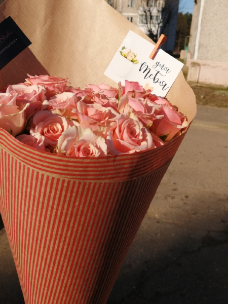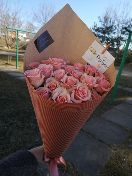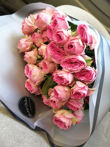 Стильный букет из кустовой розы любого оттенка. Оформление в крафт или корейскую пленку.