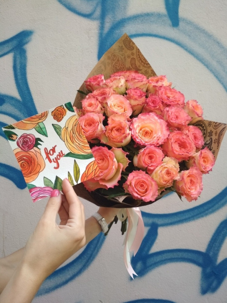 Букет из 25 роз любого оттенка, в зависимости от наличия.