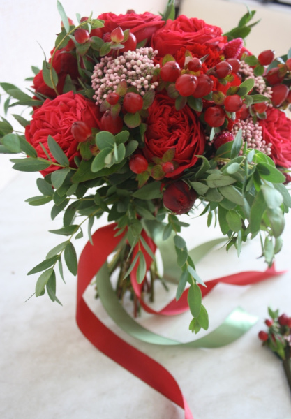 Роскошный, страстный в сочетании с бутоньеркой подчеркнет яркость чувств любящей пары.